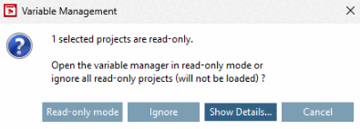 You can then view all projects in read-only mode or ignore the read-only parts so that they are not displayed in the variable management [Variable Management].