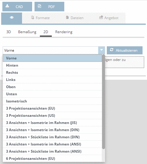 derivation of the currently configured part. For this, select the 2D button and either select a