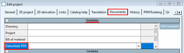 media.cfgwith the following content in the directory "_templates" should have been created automatically.TMPLATETYPES] DIR=Directory PRJ=Project BOM=BOM PDF=Datasheet PDF As soon asthe entry "PDF=Datasheet PDF" is available, the entry Datasheet PDF is displayed in PARTproject the entry Data sheet PDF is displayed in the Templates section.