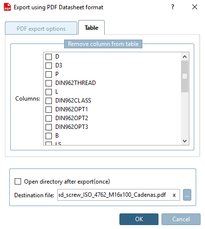 icon.-> The Export in PDF Datasheet format dialog box opens on the PDF export options tab page.