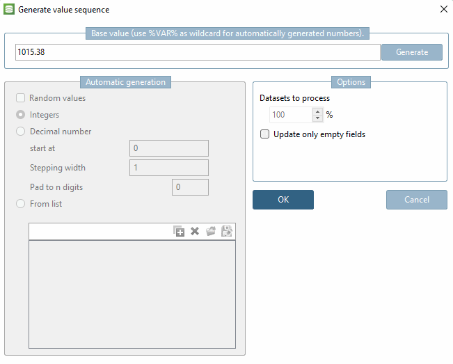 -> The Generate [Generate value sequence] value sequence dialog box opens.