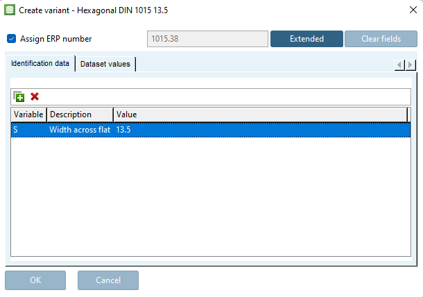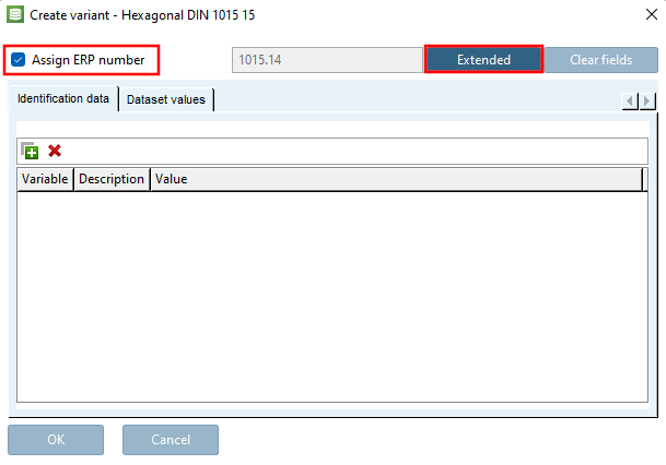 • To change the value of an ERP variable, select the Data set values [Dataset values] tab page.