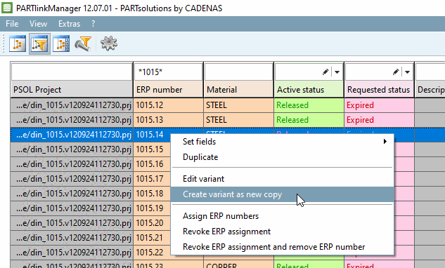 To create a variant in PARTlinkManager, proceed as follows: