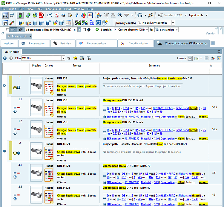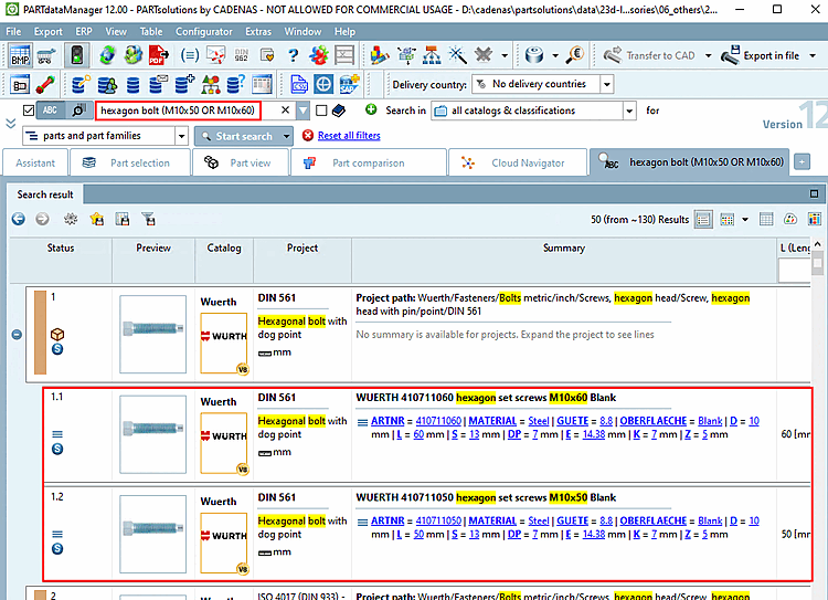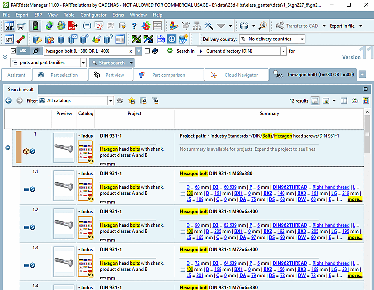 Searched: Head cap bolt with strength class 10.9 or 12.9 (If the values for strength are found in the link database or in the characteristic attribute table doesn't matter.)