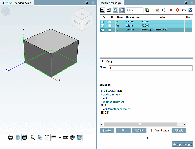 Comments can be added both in the Formula [Equation] dialog area and in the Characteristic algorithm [Attribute algorithm] dialog box.