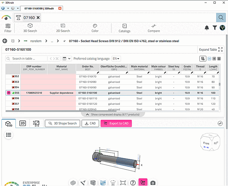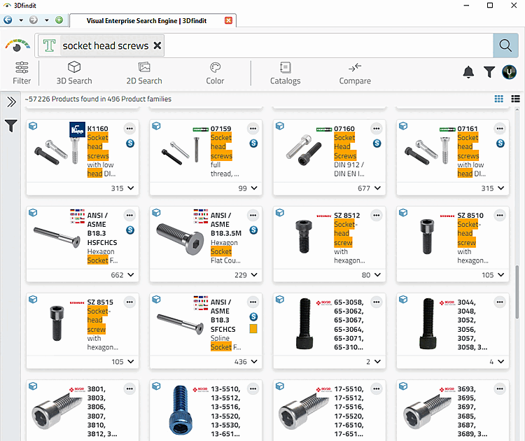 Enter the term "socket head screws" in the search field. (If you know the article or ERP number, for example, you can also search directly using this).