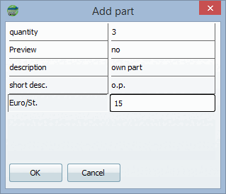 Enter the relevant details for the part and confirm with .