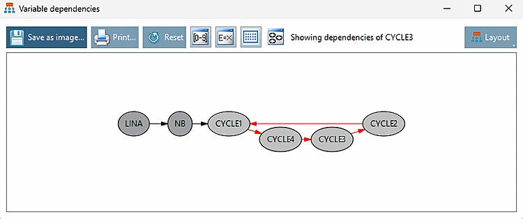 variable structure, [Variable dependencies] you will see a cycle of