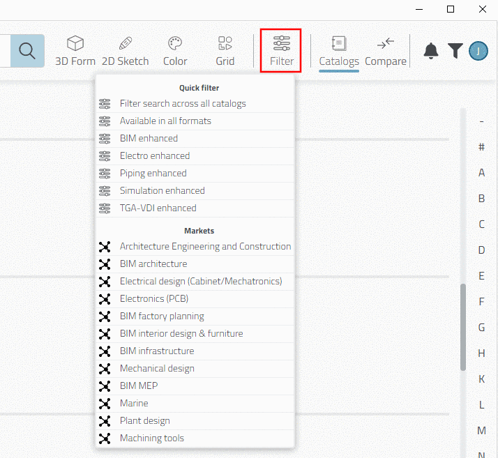 cadenas_threads.cip.Under the Filter function different Markets are defined. Otherwise they will not be visible. Furthermore other Quick filter are available.