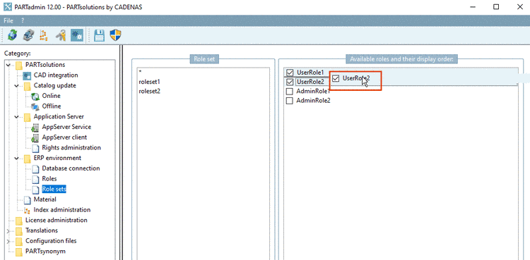Setting via user interface: PARTadmin -> ERP environment -> User-Role assignment