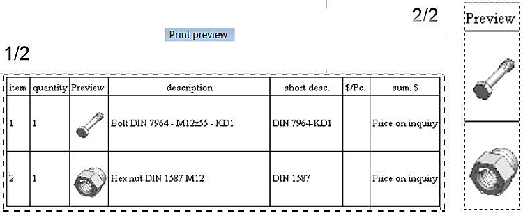 The illustration (detail) shows the first (1/2) and the second of two sides (2/2).