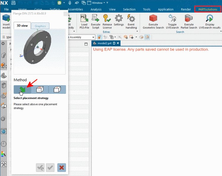 -> Now the NX placement dialog should show exactly those settings which had been applied when recording the macro.