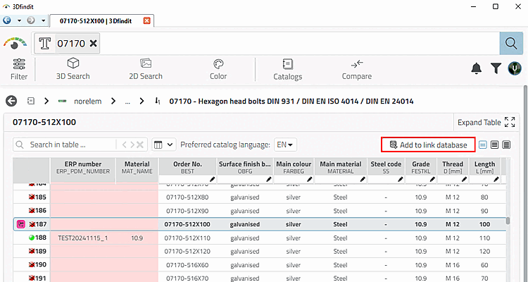 Depending on the intended workflow, an ERP number can be added to a table row (a product) in 3Dfindit.