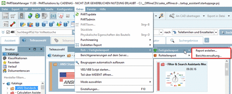 Report generations on server... ExtrasServerJobList Connect assemblies automatically Start VBS/VBB script... Select mode ModePreferences Settings... The creation of the structure happens in the configuration file