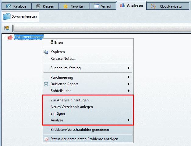 In this section you can find the PARTdataManager action names for context menu commands.