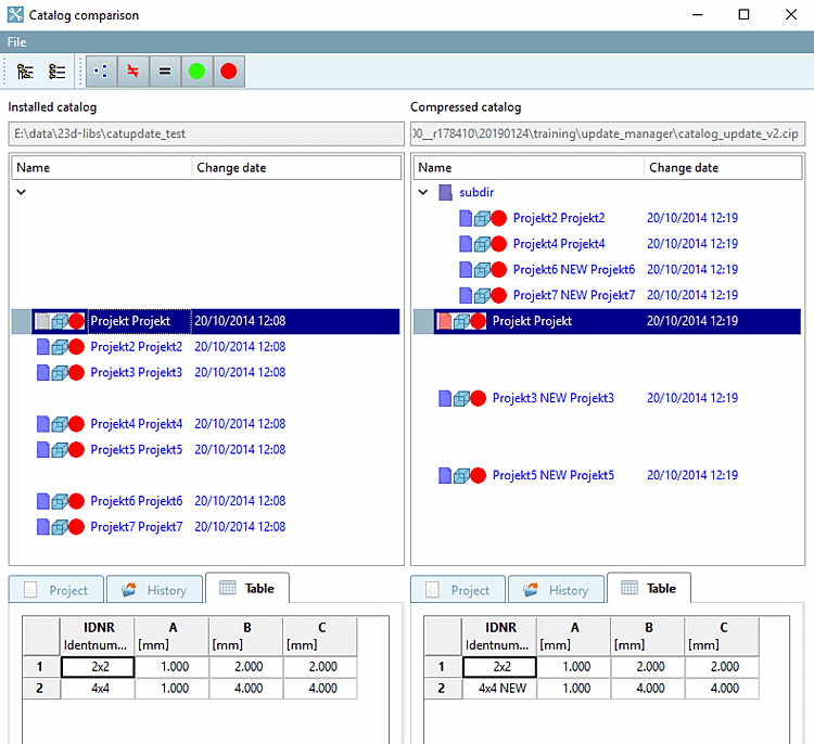 Under PARTadmin -> Category "Catalog update [Catalog update] " -> "Offline [Offline] " -> "Compare [Compare] " you can see a catalog comparison [Catalog comparison] with display of the directory structure and table. Changes to the directory structure are immediately visible.