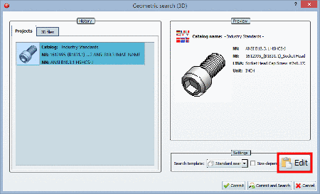 Settings for the geometric search dialogs may be made. The button Edit is invisible.