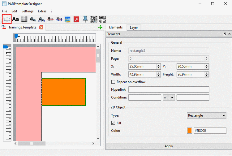 • Fill: If you want to fill the element with the color defined under Color, then activate the checkbox.