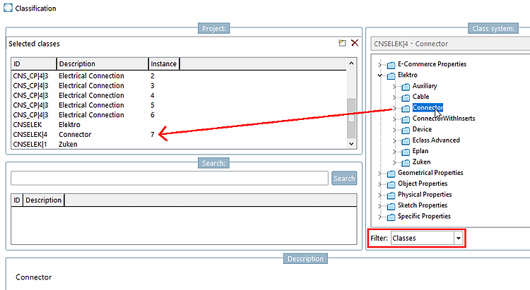 When classifying plugs/connectors and not all connections are of the same type, the modeler himself has to make the decision which connector symbol has to be set globally and adequately for the function of the part.