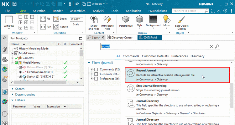 In the "Search" field, enter "journal" and then click on Record Journal.