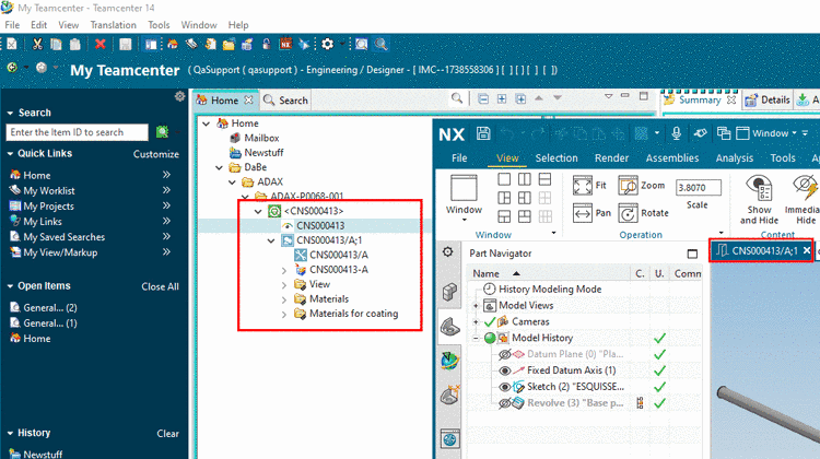 To find out the mandatory properties and their internal name used by the interface configuration, record a journal (macro) in NX using the "Cadenas Item" type.
