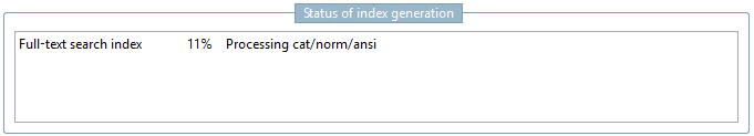 -> After finished generation the dialog is automatically updated and the Full-text index is displayed with 100%.