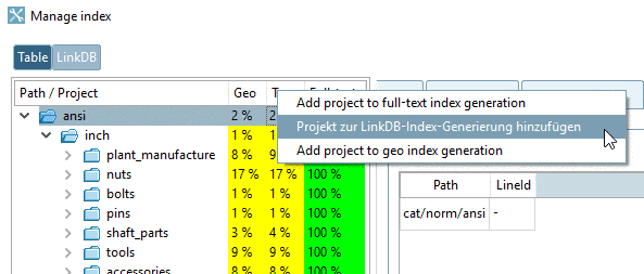If you are working with ERP integration and the catalog to be indexed contains LinkDB projects, click on Add project to LinkDB index generation. and repeat the procedure analogously.