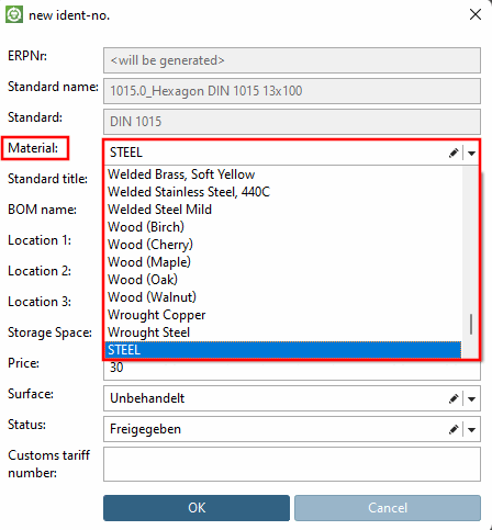 - 4.11.5. Change default description text for ERP_PDM_NUMBER - erpcustom.cfg -> Block [VARS] -> Key "USERDIALOG_ERPNR"