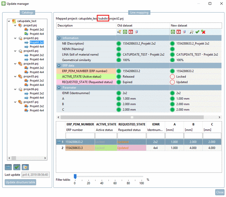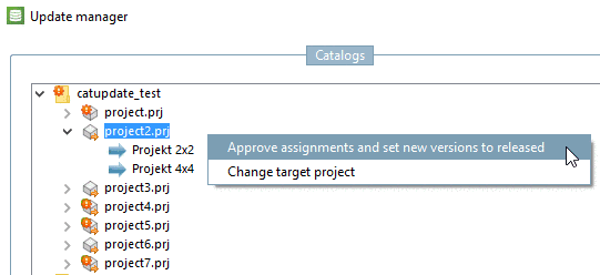 In the Update manager, the complete catalog structure is displayed. Single projects or whole directories can be selected and edited.