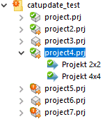 At first the projects "project.prj", "project2.prj" and "project4.prj" are edited in the Update manager.