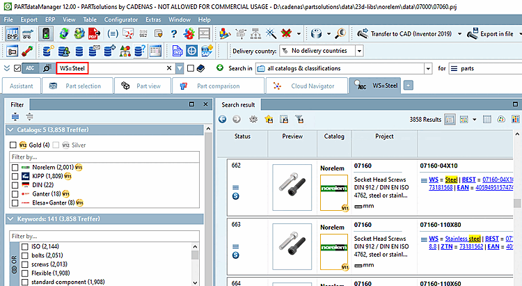If, on the other hand, you only want hits with "Stainless steel", e.g. you want to exclude hits with "Steel" alone, then combine Phrase search and Strict search.