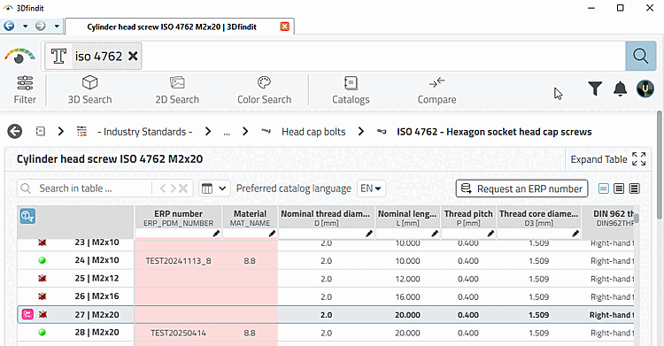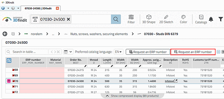 -> In both cases, the table of the relevant part is opened in 3Dfindit. (See next point.)
