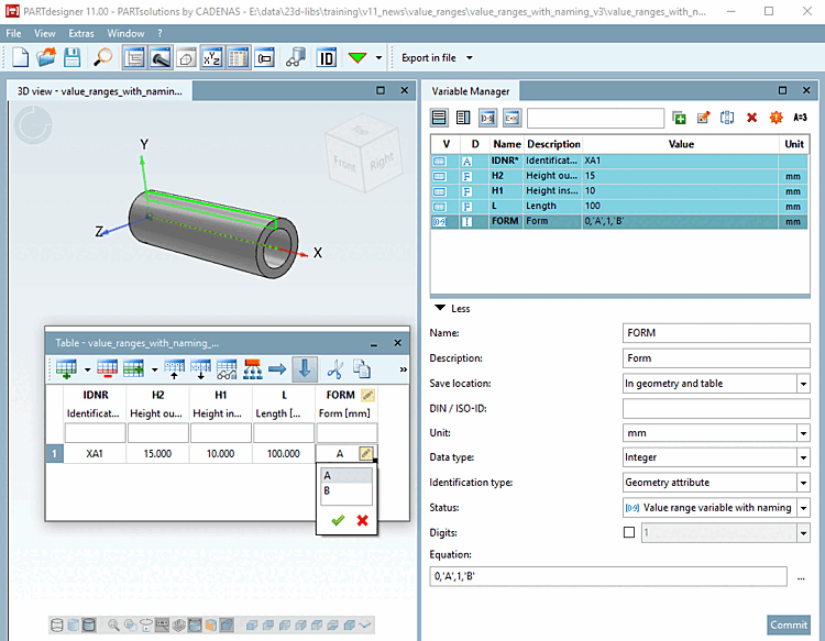 In the third step, you link the cut sketch with a corresponding condition [Condition], which creates or omits the cut depending on the value selection of the FORM variable.