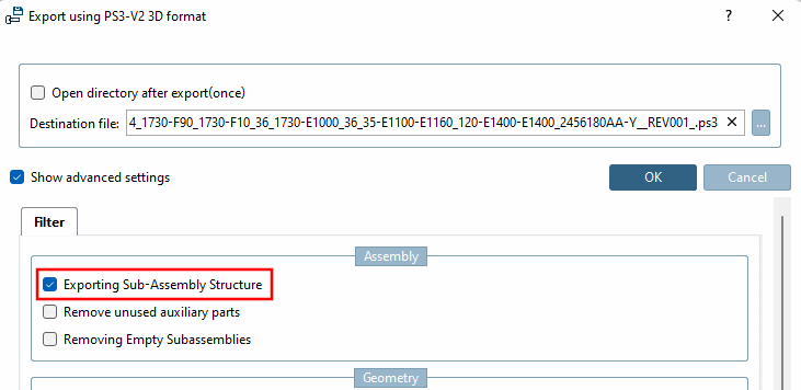 The subassembly structure can also be transferred to the CAD system, although the method was changed in V12.8.