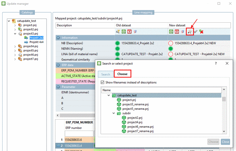 At project 3 mapping was possible although the project name changed. You can see the name of the old project in the index tree and the name of the new project under Line mapping -> Assigned project.