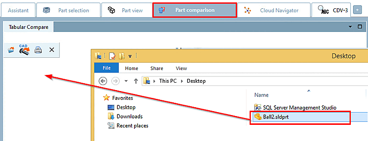 Load any native file (specific CAD file or neutral format ) into the Compare dialog [Compare].