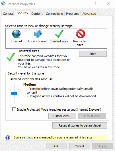 If a client want to log in to the Appserver and transfer user data automatically (SSO), either from an embedded browser or any browser, then the AppServer must be accessible either from Local intranet or included in the list of Trusted sites.