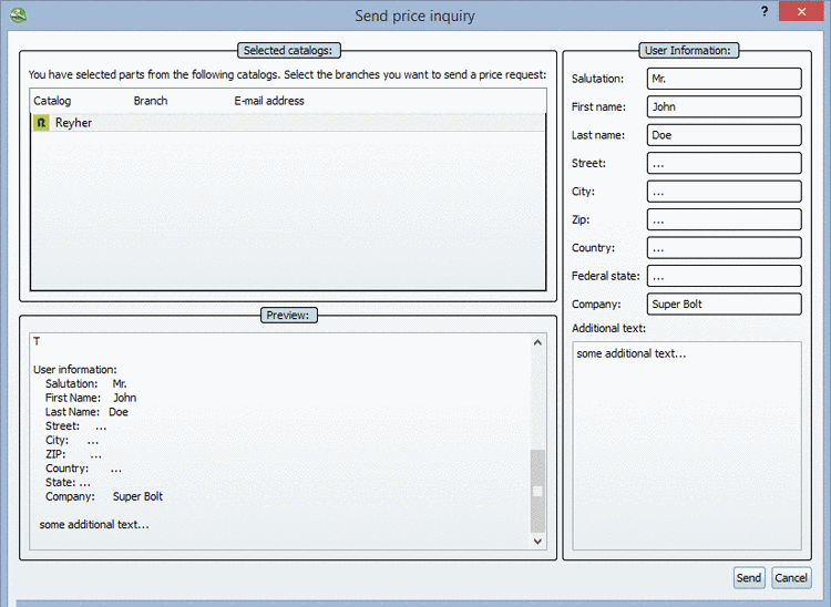 Hereto activate the checkbox Price request at the desired parts and afterwards click on the button Send price inquiry.