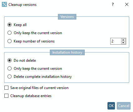 You can call up Clean up versions [Cleanup versions] either via commands or via the context menu of the catalog.
