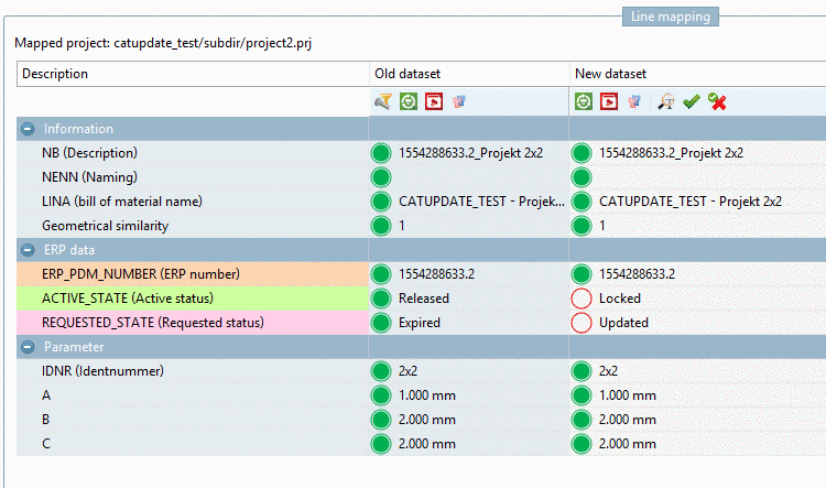 If no correlation to the old dataset has been found, the dataset to be assigned is possibly at another position. Via Search project you can perform a keyword search. On this see Section 4.16.3.5.4, “No correlation to the old dataset found”. |