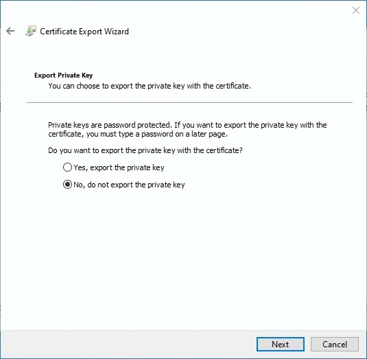 Select No, do not export the private key and select .
