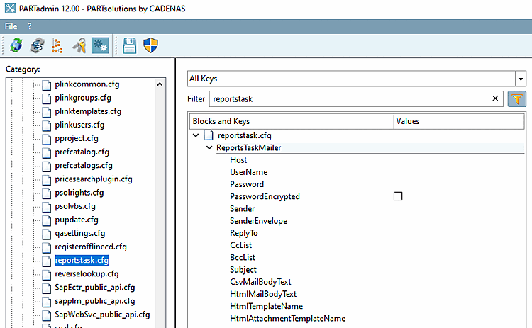 $CADENAS_SETUP/reportstask.cfgmust be configured.SMTP authentication is always possible, SSMTP should also be possible.