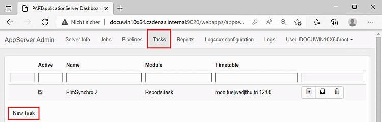Assign a name under Name and select the new option ReportsTask in the list field under Module.