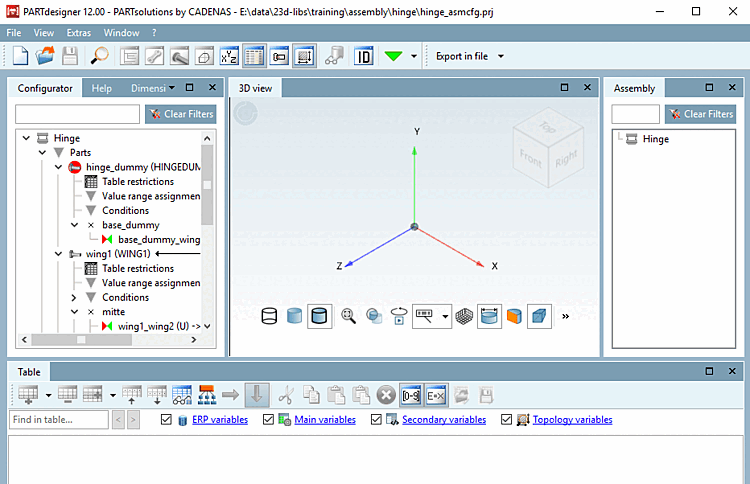 -> The Table and 3D view docking windows are still empty. Initially, only the name of the assembly can be seen in the Structure [Assembly] docking window.