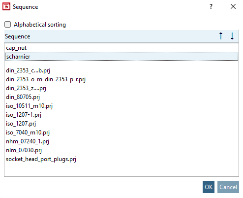 If there are both subdirectories and projects, these are displayed in two blocks. Select the desired one and move up or down using the arrow buttons.