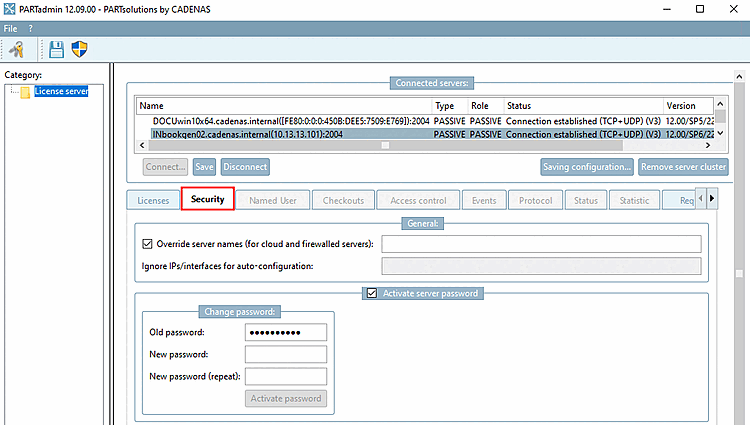 To do this, in the License server category, on the Security tabbed page, you can explicitly specify a DNS name under Override server name (for cloud and firewalled servers) [Override server names (for cloud and firewalled servers)] that the server should communicate to the clients during the auto-discovery phase.