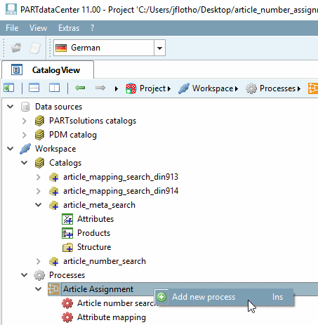 Click on the Add new process context menu command under Assignment item [Article Assignment].