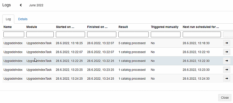 provides information about tasks that have already been run. In the displayed overview you can see when the tasks were run and how many catalogs were updated.