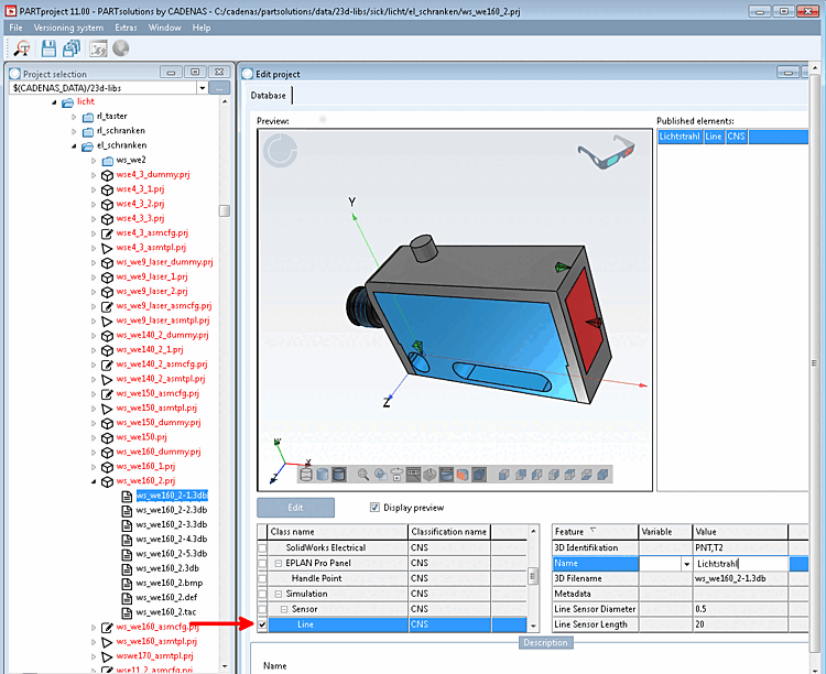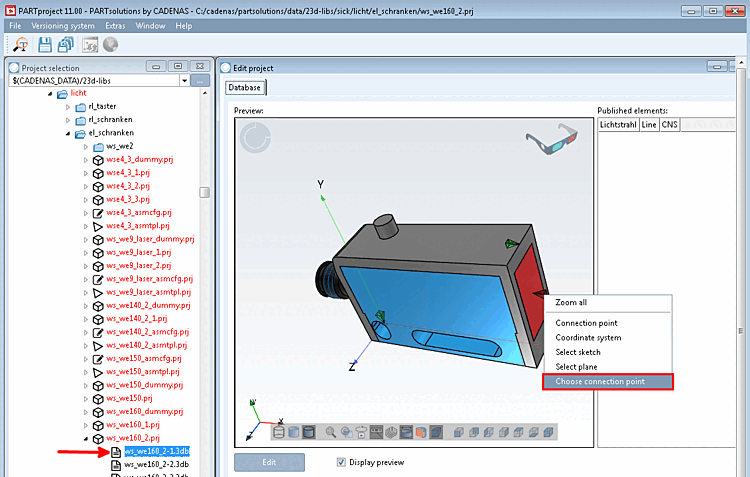 In the configurator [Configurator], select the individual part to be classified in the assembly and open it using the context menu command in PARTproject.