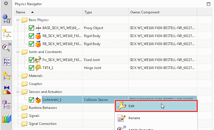 The following example shows how to classify a sensor and check the classification in the Mechatronics Concept Designer.